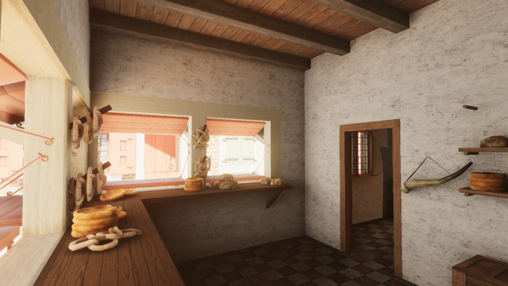 In 1640 vind je op de markt, recht tegenover het Hof van Holland en naast de protestantse kerk, een bakkerij. Naast gewoon (bruin) brood vind je er ook krakelingen en beschuiten. De beschuiten zijn groter dan vandaag en worden gebruikt als bord voor gerechten met saus. Men kan dan ook de beschuit opeten zodat er niets verloren gaat. De bakker blaast op zijn hoorn wanneer het brood klaar is, maar ook ’s avonds als er nog brood over is, dat wordt dan verkocht aan de halve prijs.